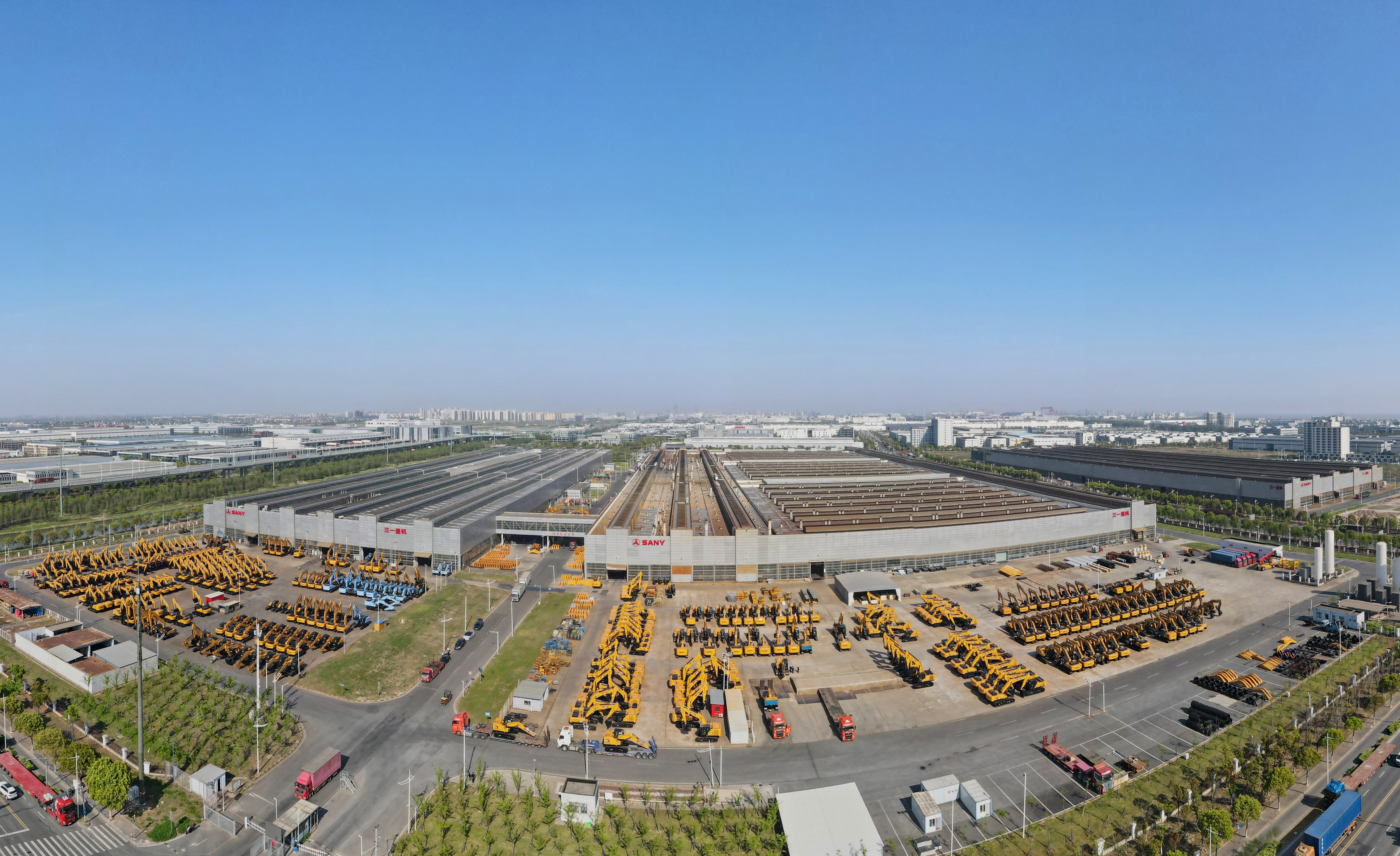 空中俯瞰上海三一重機股份有限公司外景(無人機全景照片,2025年4月15日攝)。新華社記者 方喆 攝