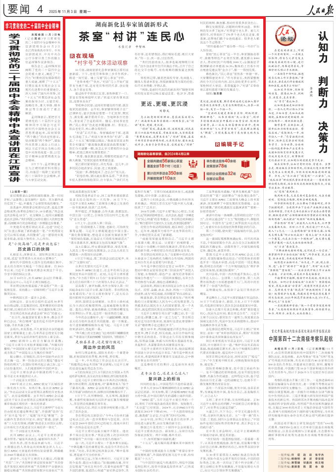 “村講”正式開始。奉家鎮政府干部、選調生毛譯起了頭:“歡迎大家來參加‘村講’。最近,‘十五五’規劃建議提出,‘推進宜居宜業和美鄉村建設’‘提高強農惠農富農政策效能’。我們今天就聊一聊,該怎么學習貫徹四中全會精神,把渠江源村發展得更好。”